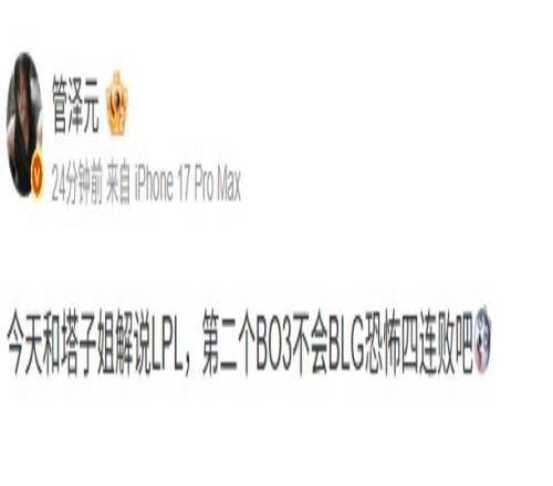 管泽元:今天和塔子姐解说LPL,第二个BO3不会BLG恐怖四连败吧